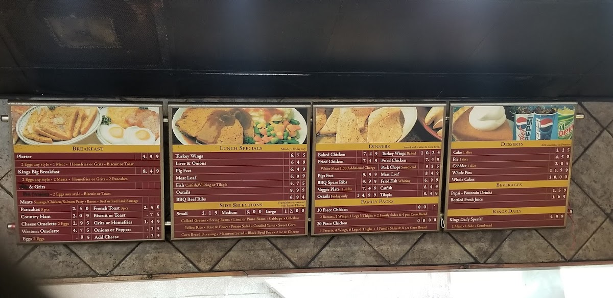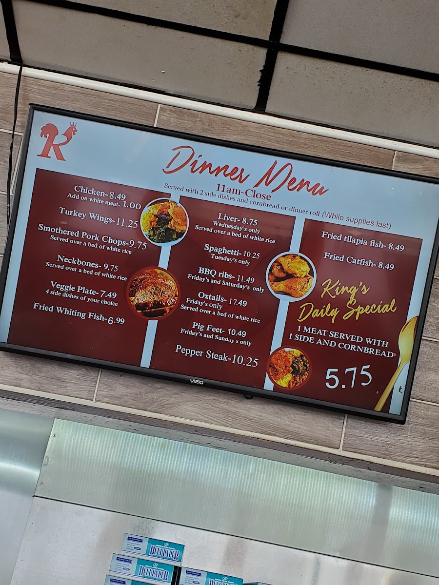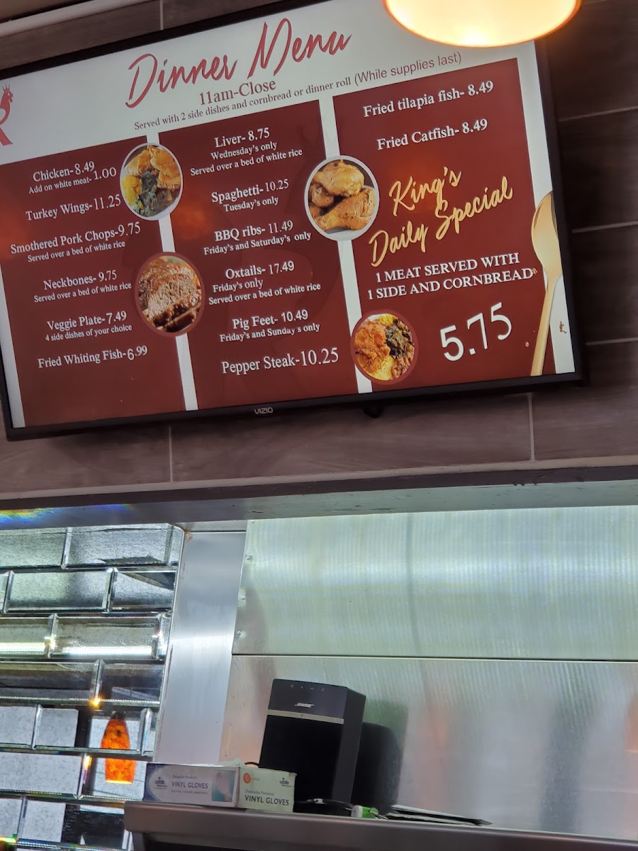 Customers rave about the generous portions and the consistently delicious flavors, with reviews highlighting the always-warm atmosphere and friendly service. While experiences may vary, especially with side dishes, the standout turkey wings and hearty meals create a worthwhile trip. Join the ranks of satisfied diners who return for the comforting embrace of King’s Southern Delight—where every meal feels like a warm hug from the south.